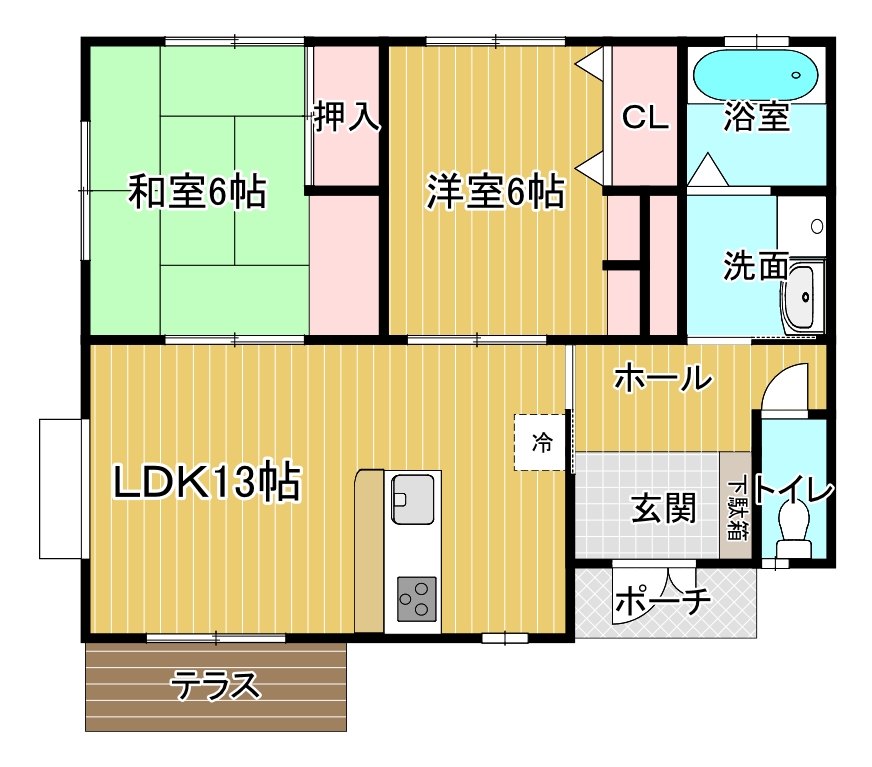 間取内容 和室6畳   洋室6畳   LD8畳   K5畳