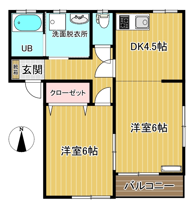 | 間取内容 | 洋室6畳 洋室6畳 DK4.5畳 | ||